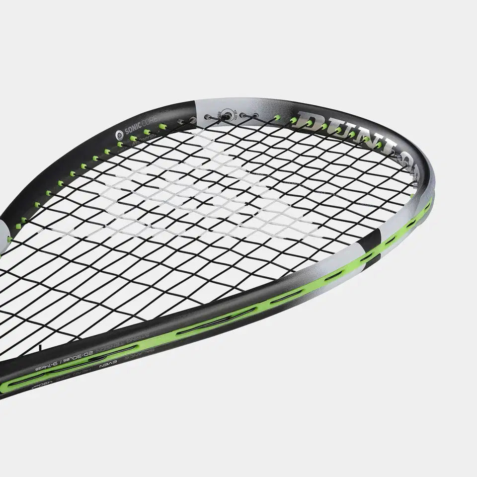 Elevate your game with the Dunlop Sonic Core Evolution 130, a cutting-edge squash racket designed for advanced players who demand precision, power, and control. Featuring Sonic Core made with Infinergy, this racket provides exceptional rebound properties while significantly reducing vibrations for a more comfortable playing experience. Strategically placed at 2 and 10 o’clock, this advanced material enhances stability and responsiveness. The Flex Touch Resin technology ensures outstanding touch and control, offering a softer feel with excellent repellent properties for better shot execution. Built with premium carbon fibre, the frame maintains a lightweight yet durable structure, making it easy to maneuver. The tapered shaft design optimizes stiffness distribution, generating additional power upon impact. With an extra head light balance, 125g frame weight, and a 14x18 string pattern, this racket delivers fast swings, precision placement, and effortless power—perfect for competitive squash players.
